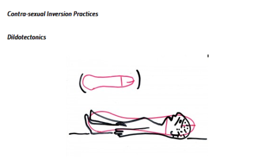 Dildotectonics is the experimental contra-science dedicated to the study of the birth, formation and uses of the dildo. Here the term dildo designates all kinds of technologies of gender and sex that resist the normative production of the body and its pleasures. Dildotectonics’ aim is to draw a general cartography of the cracks and slippages inflicted by the dildo on the hegemonic sex-gender system. To make dildotectonics a critical branch of contra-sexuality is to consider the body as a dildoscape: a living surface where dildos are inscribed and displaced… Dildotectonics locates gender and sexual technologies of resistance. It studies their functioning, the ways in which they interrupt the flow of production of body-pleasure-capital not only within heterosexual but also within queer cultures.